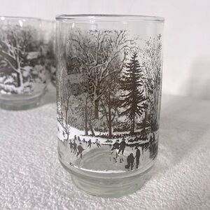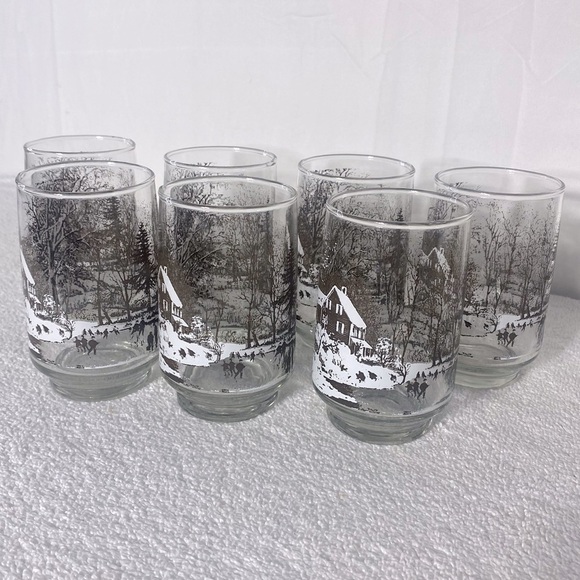 Vintage Currier And Ives Winter Scene Glass Tumbler Set x7