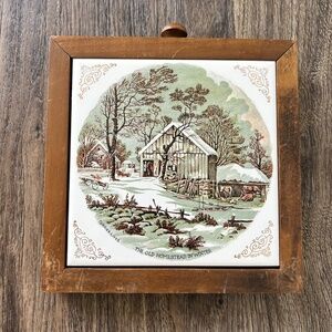 Vintage Currier & Ives Trivet Wall Hanging Secret Key Holder