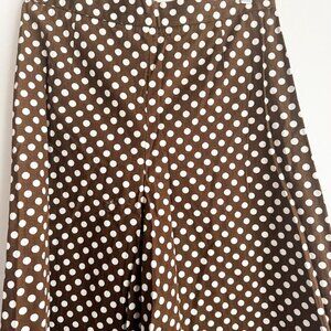 Vintage Custom Made Super Wide Leg Brown White Polka Dot High Waist Pants S
