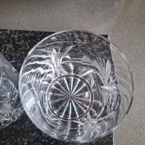 Beautiful vintage cut crystal whiskey glasses with classic starburst and leaf cut design. Perfect for whiskey, scotch, cocktails, or everyday use. Heavy base with excellent clarity and sparkle.