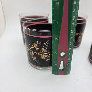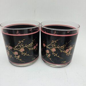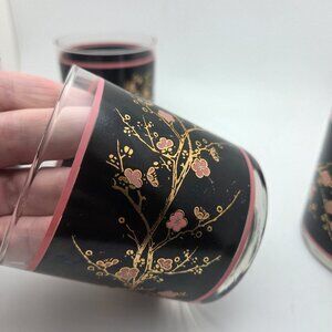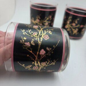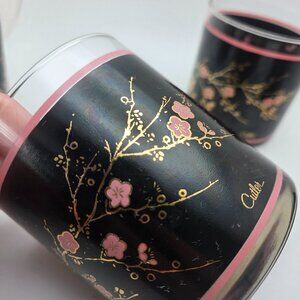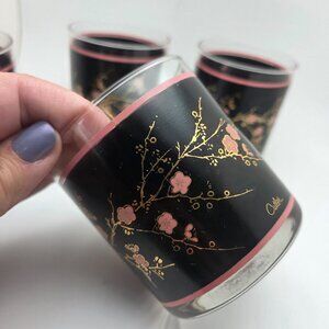 Vintage Cutler Glasses Japanese Pink Cherry Blossoms Mid-Century Modern Set of 4