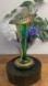 Vintage Czech Green Enamel Art Glass Vase Gold Floral Raised Enameled Bohemian