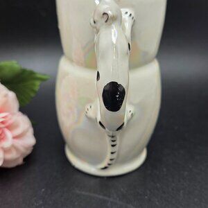 Vintage Czechoslovakia Porcelain Pearl Lusterware Cat Handle Pitcher Jug Creamer