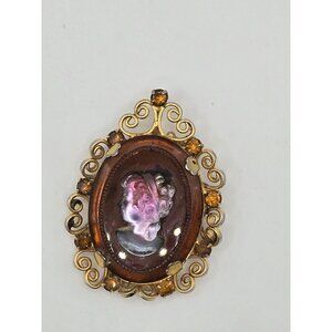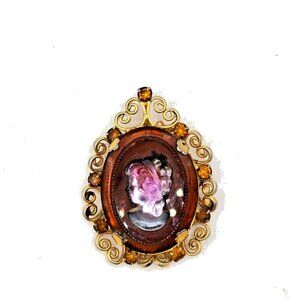 Vintage D & E Juliana Amber Glass Metallic Cameo Pendant Brooch ETC8018 Book
