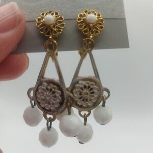 Vintage DANGLING White CHANDELIER EARRINGS Clip On Estate