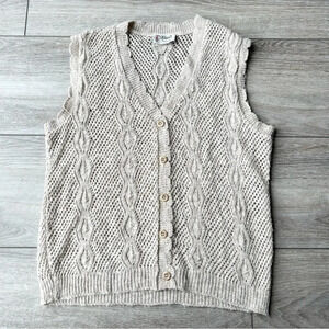 Vintage D'Allaird's Crochet Open Cable Knitted Waistcoat Vest Made in Canada