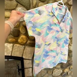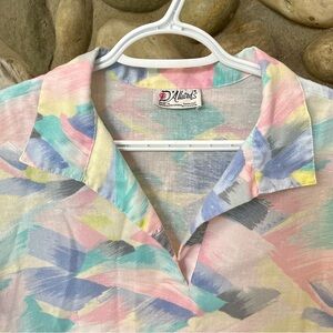 Vintage D’Allaird’s Pastel Brush Stroke Collard V Neck Top