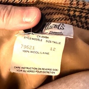 Vintage D’Allaird’s Pure Wool Prince of Wales plaid blazer made in Canada in excellent vintage condition. Timeless sophistication meets classic tailoring in this gorgeous vintage D’Allaird’s blazer. Crafted from 100% pure wool in a caramel beige-and-black Glen plaid (Prince of Wales) pattern, it features a structured silhouette with shoulder pads, wide 1970s-style lapels, and roomy front patch pockets, concealed buttons. Fully lined and beautifully made, the quality you’d expect from D’Allaird’s. Perfect for fall layering or adding a retro-chic touch to your modern wardrobe. Excellent condition for its age (it’s probably dating from late 70s – early 80s), I can’t see any flaws and I don't think it's been worn at all. Strong dark academia vibe. Marked size 12 but it possibly fits smaller like lots of vintage garments, so please check measurements (I usually wear size L Large and it fits me fine). All measurements are approximate and taken with the garment laying flat: Shoulders 18'' Armpit to armpit 20" Total length 30", Sleeve from shoulder 22.5''. This item comes from a smoke free, pets friendly home. Recycled bags/box used when possible. Please, let me know if you'd like any additional info. Thanks for watching!