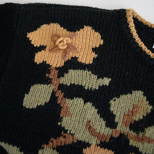 Vintage DB sport by David Benjamin Black Knit w Floral & Coins Design Sweater L