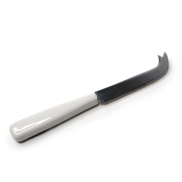 This is a beautiful Holland vintage cheese knife, featuring a classic Delftware blue & white windmill print. The piece features a sleek stainless steel blade, making it durable and sharp for slicing and spreading various cheeses, from soft Brie to hard cheddar. The standout feature is the unique ceramic handle, which adds a charming traditional windmill print.