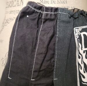 Vintage 99/2000, stretch black lace waist, white stitching, black cotton T on thicker black cotton, One of a Kind, Alt Rock, Goth, Punk, EVC, fits Size S & M, Waist-13-17, Length-12.