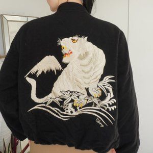 Embroidered tiger detailing on the back and front.