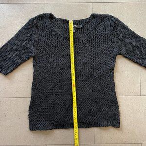 Selling a Vintage DKNY black knit short sleeved sweater shirt. This is a very lacy knit - like mesh net so it's slightly see through. 100% cotton. Says Size large but fits more like a medium. Really nice summer top with a black bra. Pristine vintage condition.