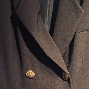 This double breasted, dream blazer comes from NYC directly. It has a tiny bit of padding in the shoulders (not a lot just the perfect amount) to make you look like a powerhouse. The cut is stunning. The collar and cuffs are black velvet. She shape is hour glassish but relaxed in fit. It's the perfect blend of structured and slouchy blazer. Dress it down with a pair of jeans or go to take it to a gala with some dress pants and heels. I am typically a size 8 and it fits me perfectly. Snug but perfect.