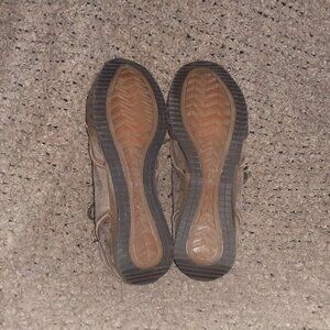 Classic pair of vintage but brand new desert style distressed brown suede booties.