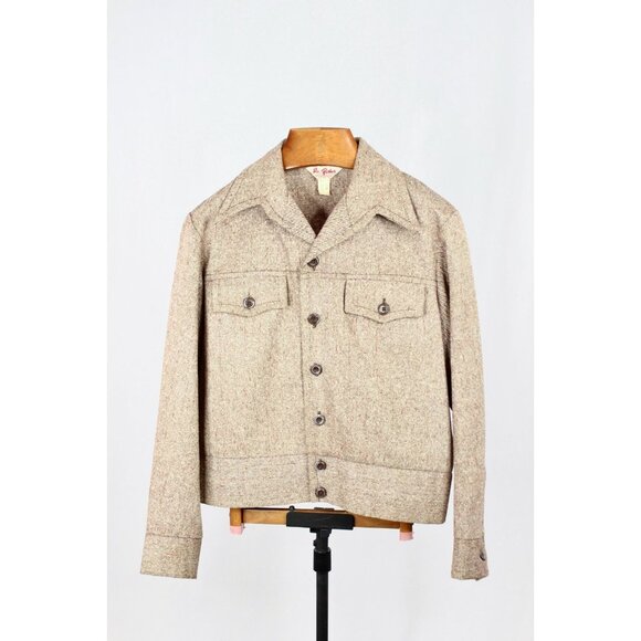 Vintage DON PARKER Taupe Brown Wool Blend Slubbed Tweed Jacket, Size L