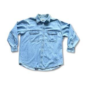 Vintage 1980s button front Dakota denim/jean shirt. Shirt has two front pockets.