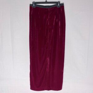 Vintage Dalia Collection Rich Burgundy Velour Pencil Maxi Skirt W Thigh Slit 6