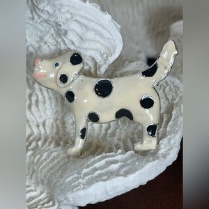 Vintage Dalmatian Dog Enamel Black and White AAi signed Brooch