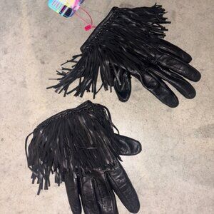 Vintage Danier Black Genuine Leather Fringe Gloves S