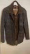 This is a pre-owned excellent condition Danier men’s leather coat jacket, featuring a dark brown outer shell with a corduroy collar.