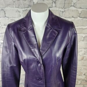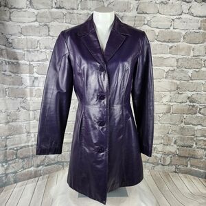 Vintage Danier Leather Button Front Trench Coat Eggplant Purple Size 6