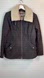 This is a pre-owned excellent condition Danier jacket, featuring a dark brown leather exterior and a cream-colored faux fur shearling Sherpa style collar.