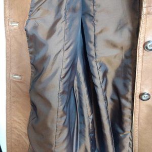 Genuine Italian leather outer, nylon, and acetate lining. Dry clean only.