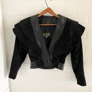Vintage 80s 90s Revolve vibe Moto Motorcycle Barbie Barbiecore Structural Designer vibe Genuine Leather Suede Bold Rock Grunge Grungy Night out Date night Party Cocktail Pastel Cropped Bolero Cuffed Unique Biker Bikercore Easter Holidays Mob wife Energy Maximalism Spanish Mexican Zoro Corrida Torrero Ravel Bolero Halloween Costume Tim Burton Goth Gothic Whimsy Whimsical Witch Witchy Witchcore Vampirecore Dark Romantic Costume Wednesday Adams Emo Bettlejuice Edgy