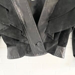 Vintage Danier Y2K Real Leather Jacket Crop Statement ruffled collar Mobwife S