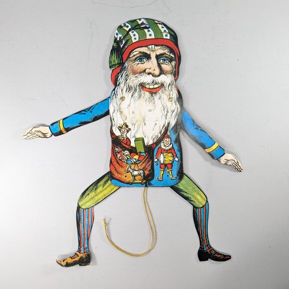 Vintage Danish Jumping Jack Santa Christmas advent calendar, creepy paper doll
