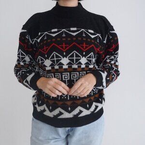 Vintage Dapper Dan Ladies Clothing Black Eclectic Grandpa Mockneck Sweater M