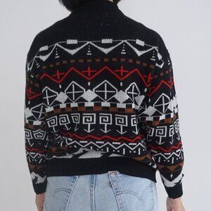 Crafted from a soft and breathable knit fabric, this sweater provides warmth without compromising comfort. The relaxed fit allows for easy layering, making it perfect for chilly days. Whether paired with denim for a casual, laid-back look or dressed up with trousers and boots, this timeless piece brings a nostalgic, retro vibe to any outfit.