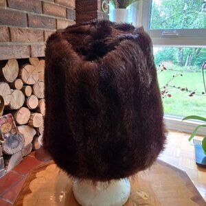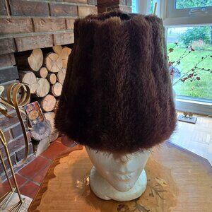Vintage Dark Brown Fur Toque with Quilted Cozy Lining