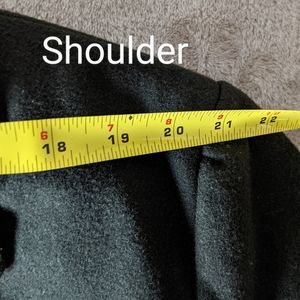 Vintage 90s dark green (looks almost black) wool double breasted pea coat. Pointed lapel, double breasted button up front, and side pockets. Lined. Long enough to cover the bum. Inside breast pocket. Good condition, 10/10