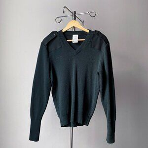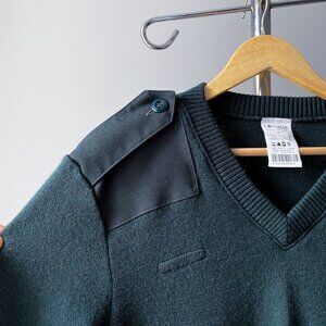 🍂 Vintage Dark Green Wool Military V-Neck Sweater by Logistik Made in Canada
