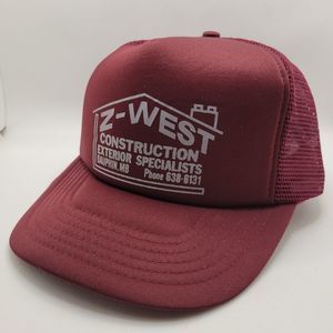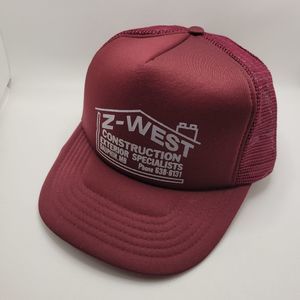 Vintage Dark Red Foam Mesh Snapback Trucker Hat Stacked Z-West Construction Logo