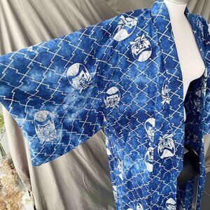 Vintage Daruma Doll Print Kimono: Retro Japanese Cotton Robe