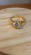 Dazzling diamond-like stone amid tiny clear stones with a gold coloured size 10 band.