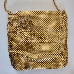 Vintage Debenhams Gold Metallic Metal Mesh Pouch Clutch Handbag Purse Party 90s