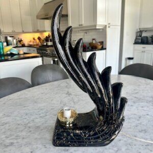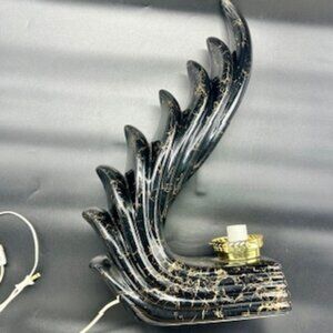 Vintage 1980's charm meets retro style in this unique table lamp. Standing at 23" tall, the lamp features a distinctive wave/flame pattern in black, adding a touch of nostalgia to any space. A standout piece for collectors or anyone looking to add a vintage flair to their decor. Perfect for those who appreciate the beauty of bygone eras, this lamp is sure to be a conversation starter in any room.