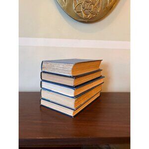 Vintage Decor Stack of 5 Blue Hard Covered Vtg Books Wedding Movie Prop Staging