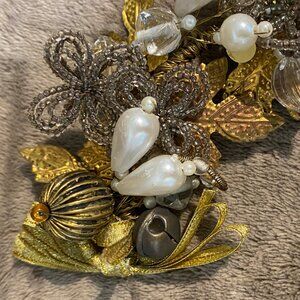 Vintage Decorative Beaded and Gold Colour Metal Grape Leaves Spray " by Katherine's Collection