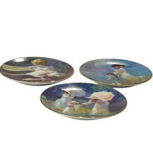 Step into a world of nostalgia with this exquisite set of three vintage decorative plates, each measuring a charming 4 inches in diameter. Crafted by the renowned American artist Richard Judson Zolan (1931-2001), this rare collection features beautifully depicted scenes titled "Summer at the Seashore," "The Butterfly Net," and "The Antique Doll." Each plate is a miniature canvas that showcases Zolan's signature style, blending vibrant colors and whimsical themes that transport you to simpler times. Weighing a mere 8 ounces combined, these plates are not only delightful to display but also easy to incorporate into your home decor.