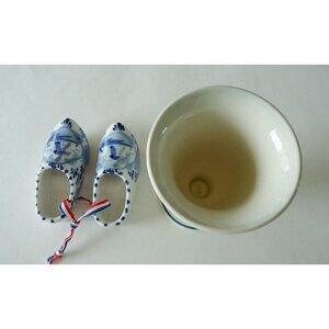 For your consideration is a Delft Blue vase and a set of miniature Dutch shoes, made in Holland.
