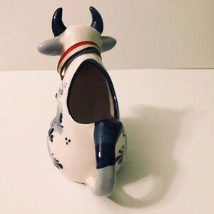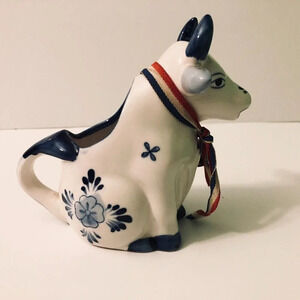 Vintage Delft Ceramic Cow Creamer Figurine 6 Inch Long Blue Hand Painted Holland