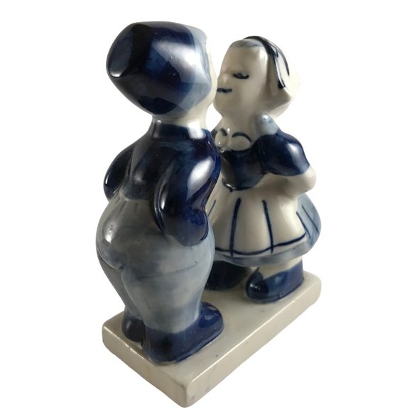 Vintage Delft Porcelain Figurine Pair Boy & Girl Kissing Holland Hand Painted