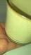 Neutral solid stoneware in beige with brown speckled base and dark brown stripe around top edge and raised dark brown stripes above the base.