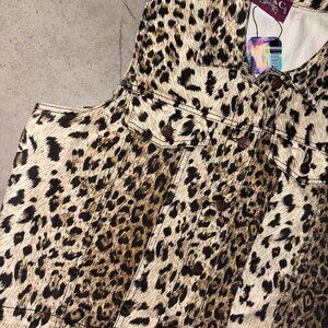 Vintage Denim & Co Leopard Print Jean Vest L