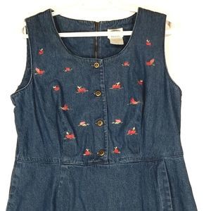 Vintage Denim Embroidered Dress - Maxi Long Blue Jean Dress - TABI - Size 8